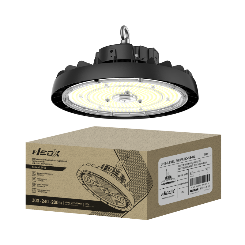 Светильник складской светодиодный UHB-LEVEL 300PA3C-SB-BL 300/240/200Вт 100-277В 175Лм/Вт 3CCT 5лет IP69K NEOX
