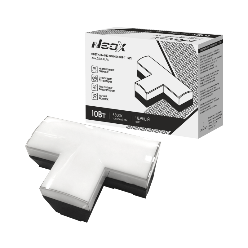 Светильник-коннектор T-тип для ДБО-ALFA 10Вт 230В 6500К черный IP40 NEOX